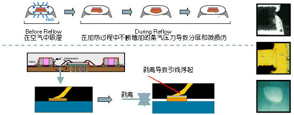 | 如果您的MSD元器件一旦超过其额定的安全存储时间,如果继续上线贴装,就可能会出现以下损伤: |