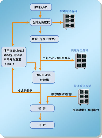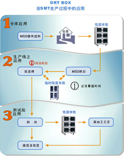 | 3、PCBA工厂MSD存储的流程(低湿柜,干燥柜,干燥箱,防潮柜,防潮箱在PCBA工厂的应用) |