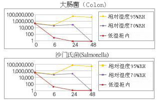 结果:如上图所示,只有存储于低湿环境中,才可抑制细菌生长