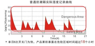 ① 下表湿度记录曲线可知,湿度下降速度缓慢的防潮存储产品,对于有经常开关门要求的工业用户而言,根本无法正常起到有效防潮作用。